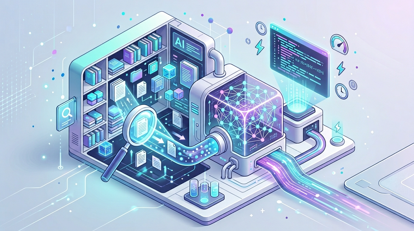 あなたがAIに質問をすると、RAGシステムはまず、社内ドキュメント、ウェブサイト、ニュース記事、データベースなど、あらかじめ用意された外部の「知識の宝庫」(ナレッジベース)や「情報検索」システムから、あなたの質問に関連する情報を一生懸命探し出します。これは、まるで賢い図書館員が、あなたの質問に合った本を山の中から素早く見つけ出すようなものです。専門的な高度な検索システムが、このステップで大活躍します。