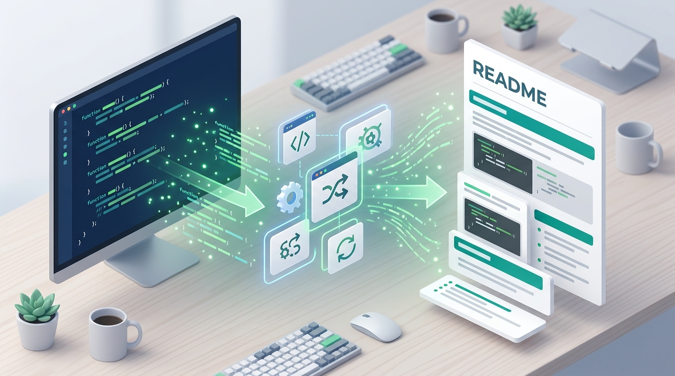 プロジェクトの「顔」とも言えるREADME。新しいメンバーがプロジェクトに参加する時(オンボーディング)、開発中のチーム内での情報共有、そして将来の引き継ぎまで、その役割は本当に大切です。でも、ソースコードが変わるたびに手作業でREADMEを更新し続けるのって、実はとっても大変ですよね?多くの現場で「更新し忘れ」や「情報が古くなってしまう」という問題が起きています。もし、その手間をグッと減らして、いつでも最新で正確なREADMEを保てる方法があるとしたら、知りたくないですか? この記事では、ソースコードからREADME.mdを自動で作り出す画期的な方法が、私たちのビジネスにどんな良いことをもたらすのか、分かりやすく解説していきます!