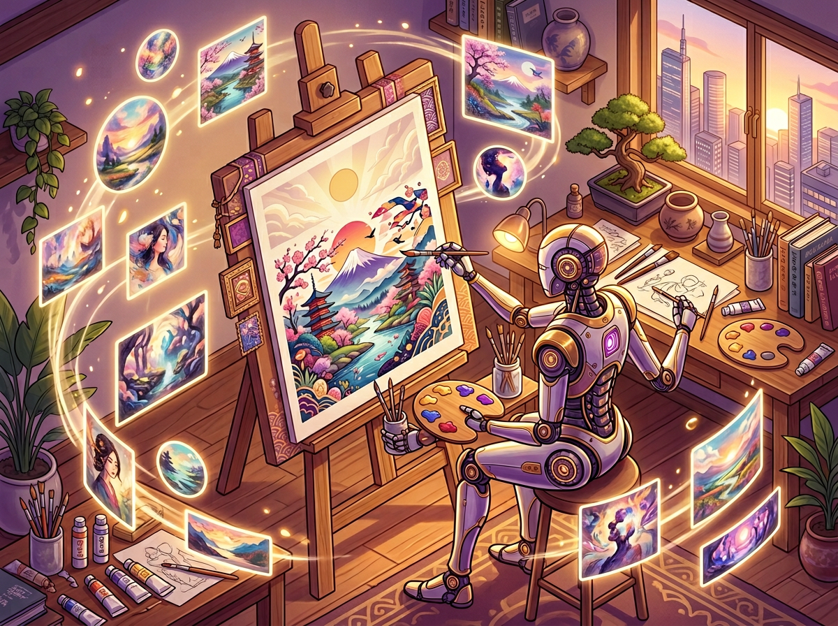「未来的な都市の風景、鮮やかなネオン、サイバーパンク風」のように、簡単な言葉(英語が多いですが、翻訳ツールを使えば日本語からでもOK!)で指示を出すだけで、まるでプロのデザイナーが何時間もかけて作ったかのような、ハイクオリティなビジュアルが手に入ります。